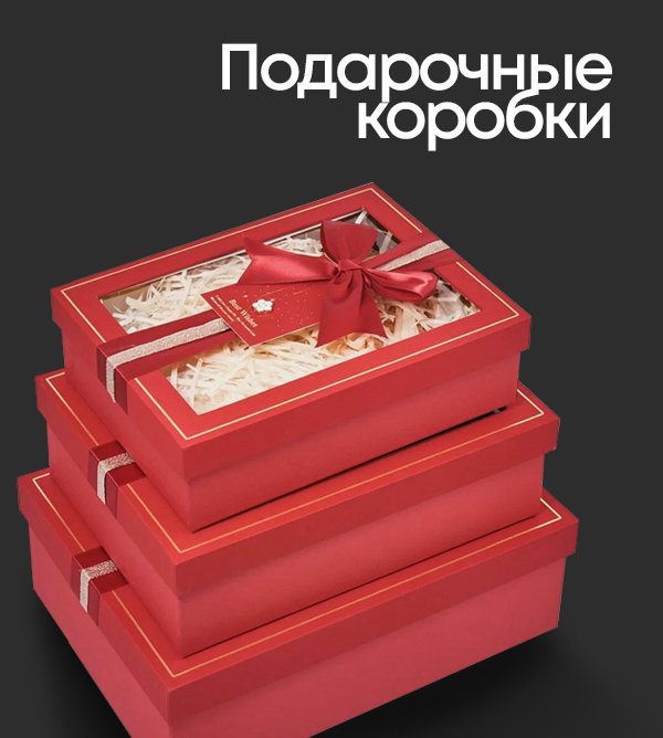 • Подарочные коробки – идеальный вариант для подарков различной формы и размера. У нас есть коробки, которые подойдут как для небольших сувениров, так и для крупных подарков.
