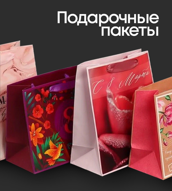 • Подарочные пакеты – практичный и стильный способ упаковки. Они бывают разных дизайнов и размеров, что позволяет выбрать идеальный вариант для любого случая.