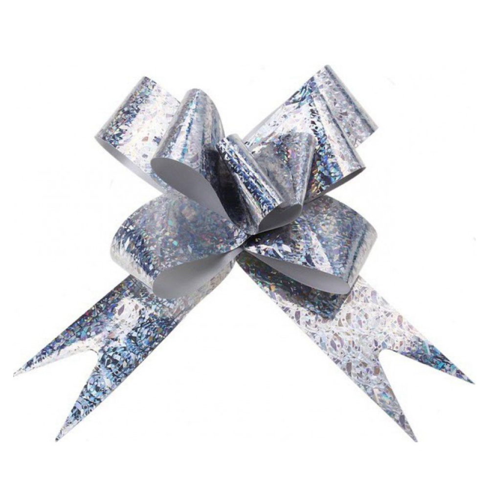 Бант-бабочка Блестки 1,8 Х 35 см (Серебро)