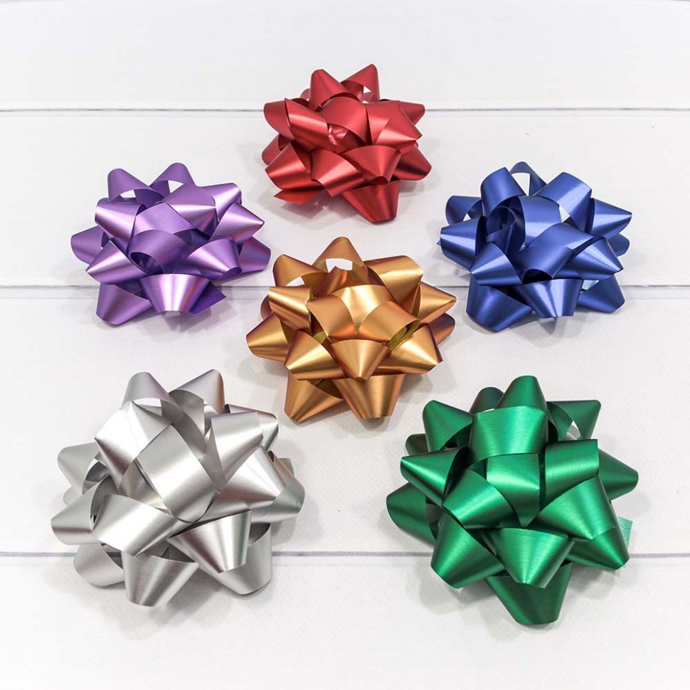 Бант Звезда 10см Набор 6 шт "Матовый металл" (Микс)