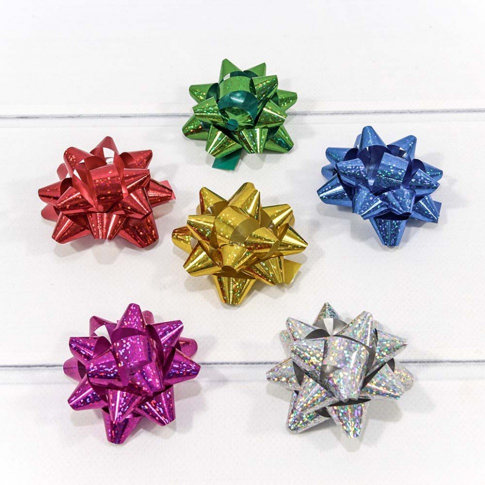 Бант Звезда 6,3см Набор 6 шт на липучке (Микс)