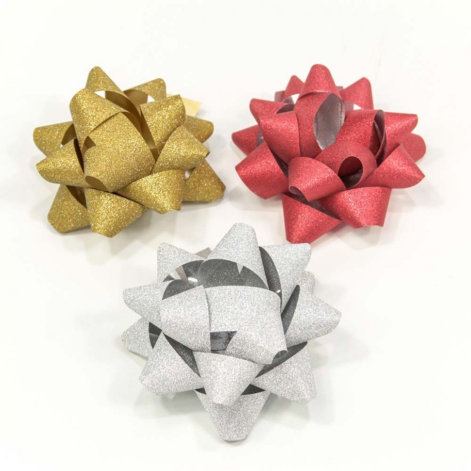 Бант Звезда 7,6см Набор 3 шт "Матовый блеск" (Микс)