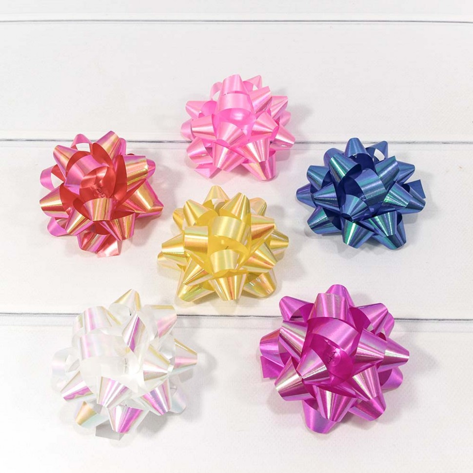 Бант Звезда 8,9см Набор 6 шт на липучке перламутр (Микс)