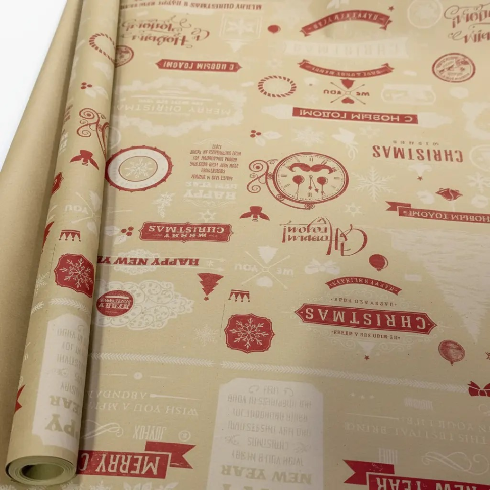 Бумага упаковочная 70 см х 10 м "Новогодняя" в рулоне (Крафт)