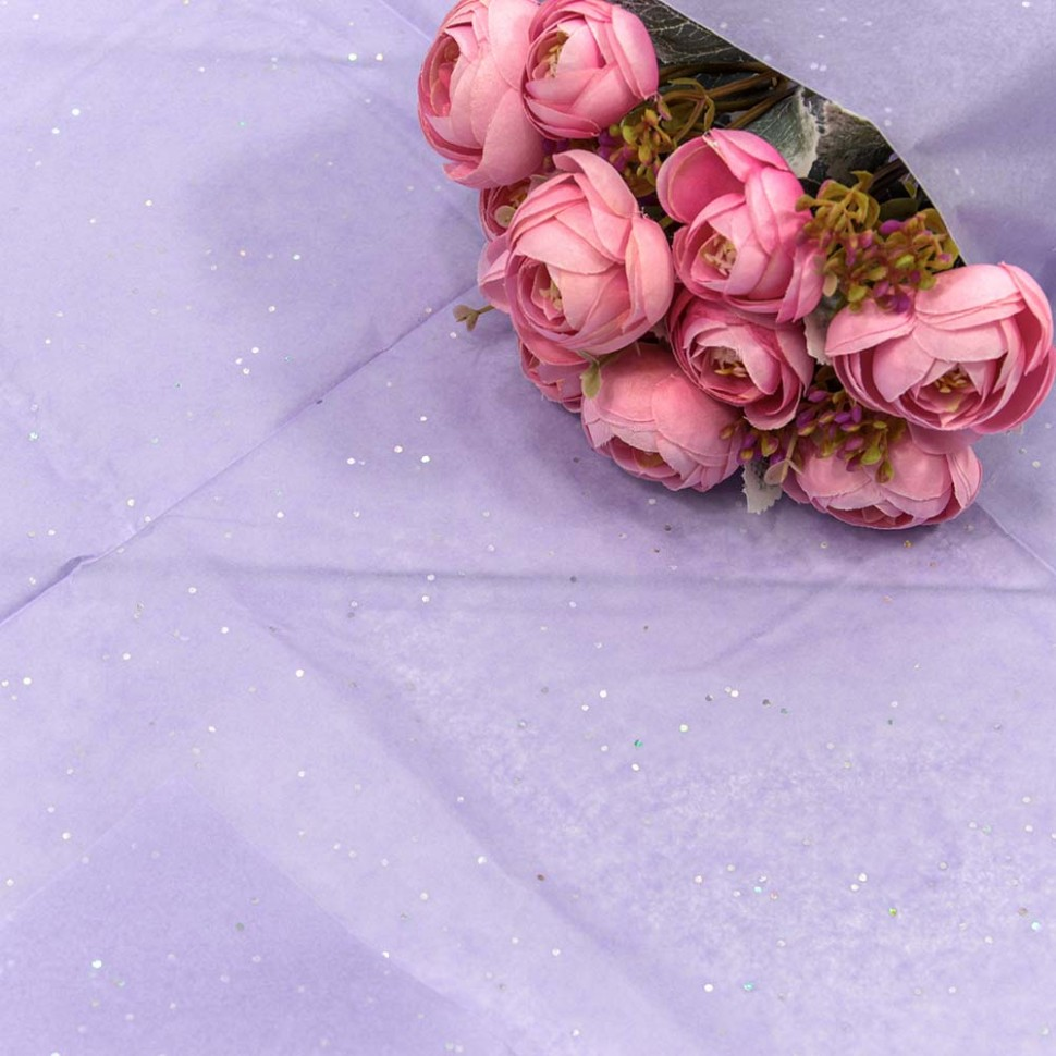 Бумага В листах 10 шт "Тишью" 50 х 66 см С блестками (Сиреневый)