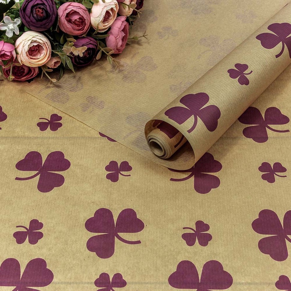 Бумага В рулоне "Цветок" 72 см х 10 м Верже (Фиолетовый, Крафт)