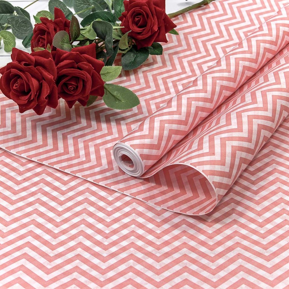 Бумага В рулоне "Зигзаг" 50 см х 10 м Белёная двухсторонняя (Розовый)