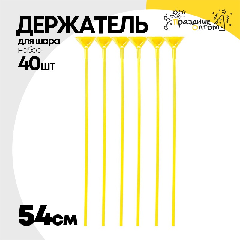 Держатель для шара Набор 40 шт Палочка + Розетка 54 см (Желтый)