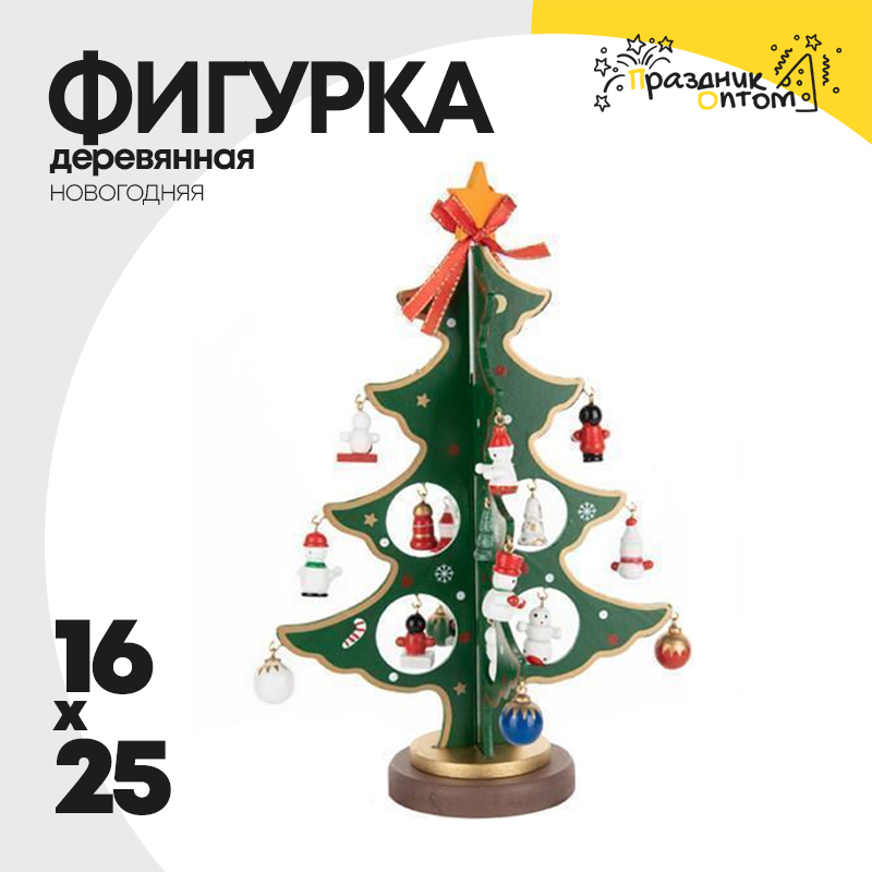 фигурка 16 х 25 деревянная елка новогодняя (зеленый)