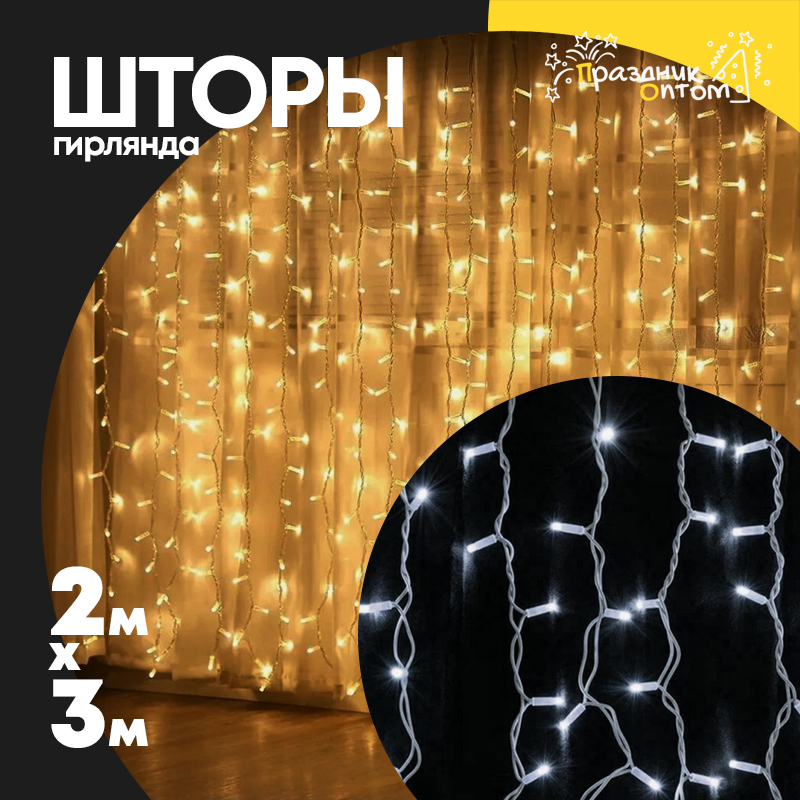 гирлянда 2 х 3 шторы белый провод (белый)