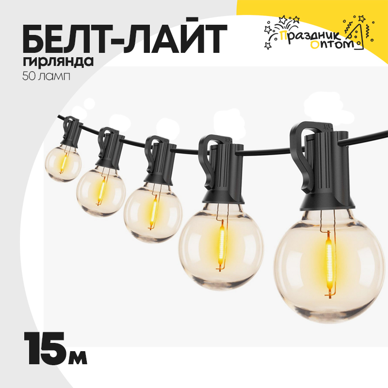 гирлянда белт-лайт 15м уличная 50 ламп черный провод (желтый)