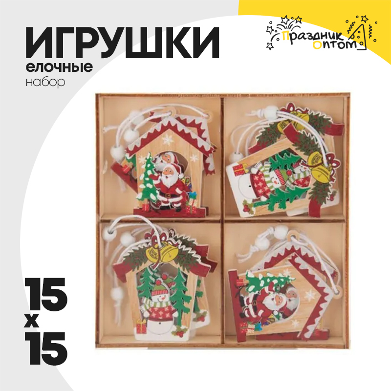 игрушка елочная 15 х 15 набор (коричневый, красный)