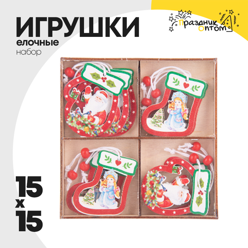 игрушка елочная 15 х 15 набор (зеленый, красный)
