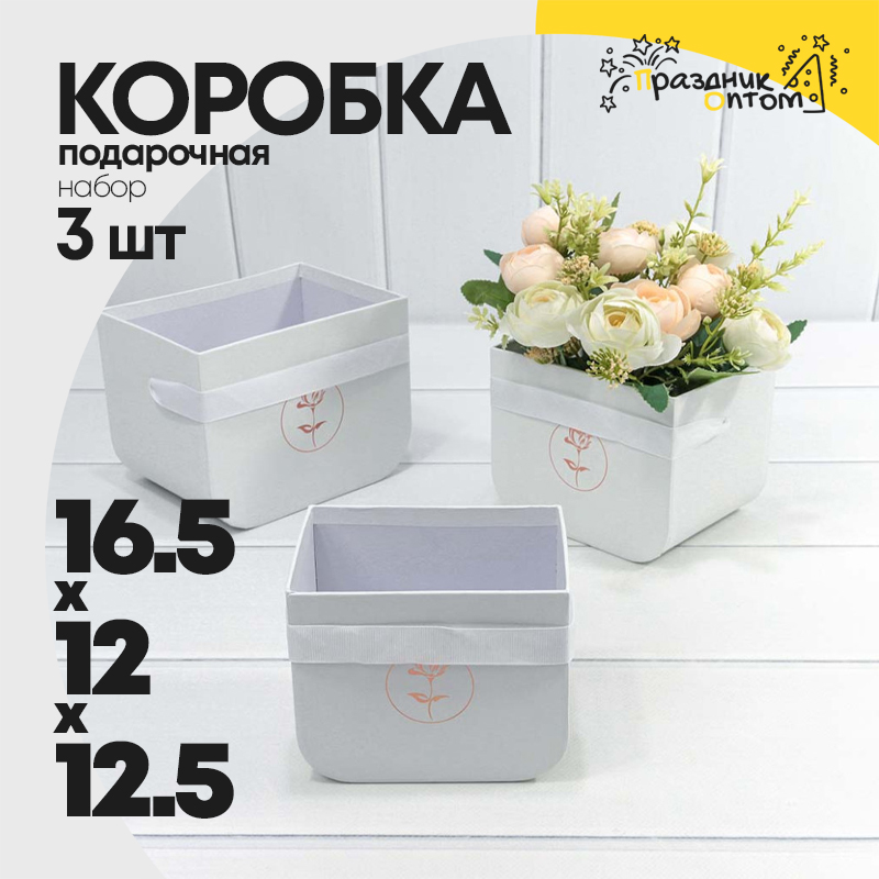 Коробка 16.5х12х12.5 см Набор 3 шт с закругленным дном (Белый)