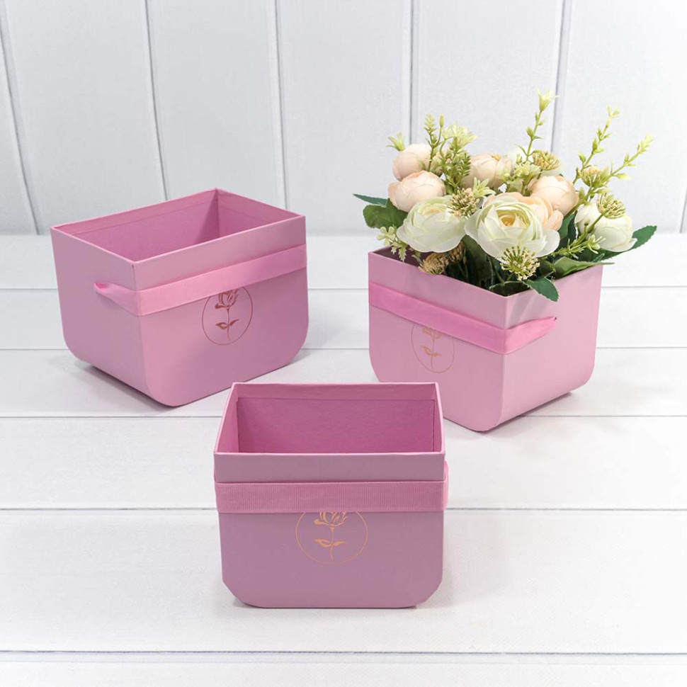 Коробка 16.5х12х12.5 см Набор 3 шт с закругленным дном (Розовый)