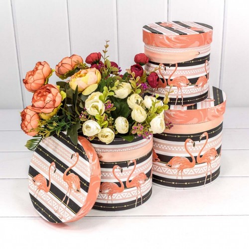 Коробка 18х17 см Набор 3 шт "Фламинго на полосатом фоне" (Белый, Оранжевый, Черный)