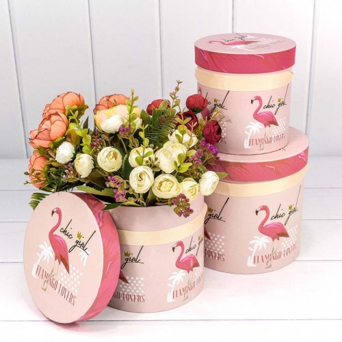 Коробка 18х17 см Набор 3 шт "Фламинго на розовом фоне" (Розовый)