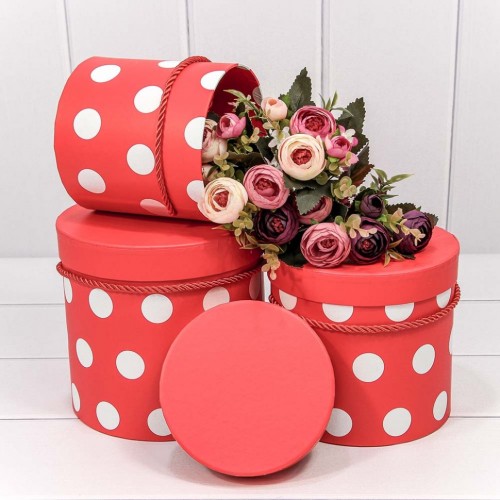 Коробка 18х17 см Набор 3 шт "Горошек" (Красный)