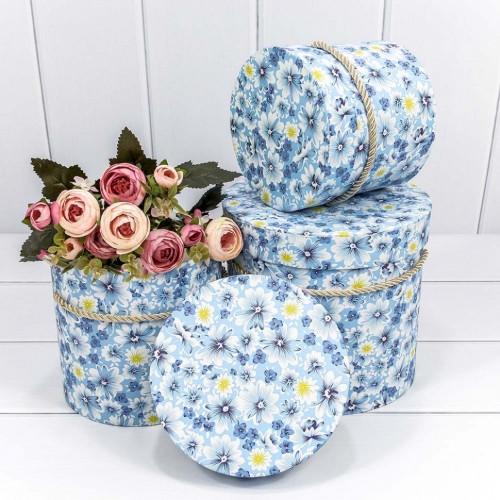 Коробка 18х17 см Набор 3 шт "Цветы на голубом фоне" (Голубой)