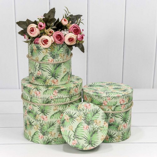 Коробка 18х17 см Набор 3 шт "Цветы на салатовом фоне" (Зеленый)