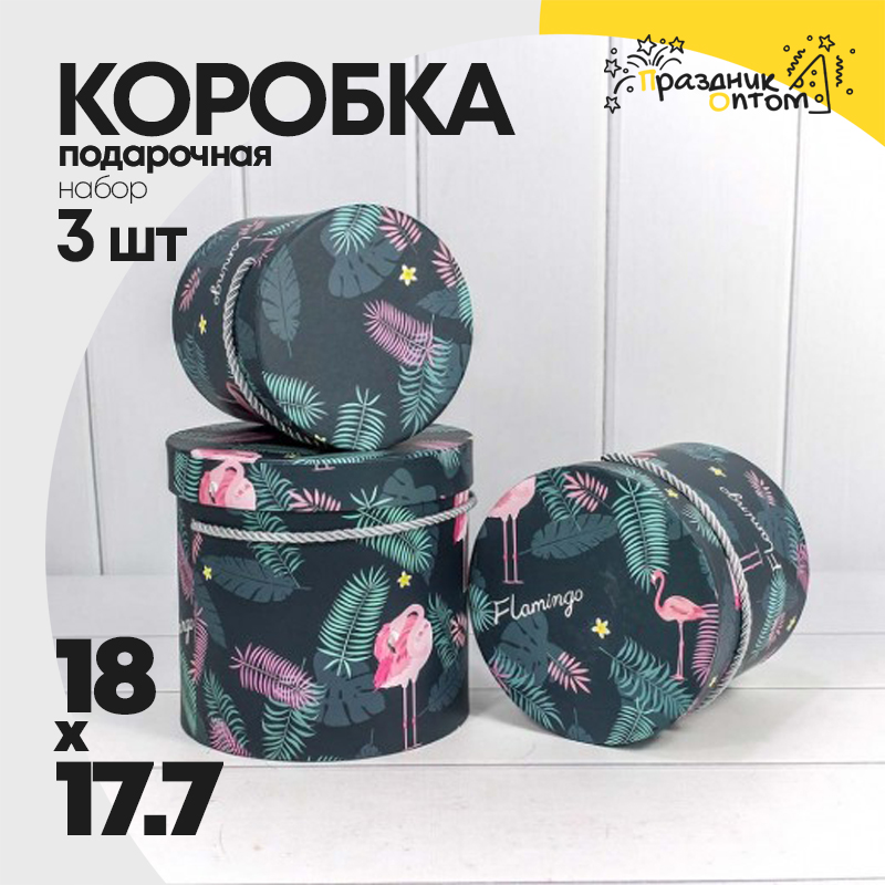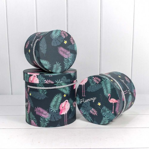 Коробка 18х17.2 см Набор 3 шт "Фламинго на тёмно-синем фоне" (Синий)