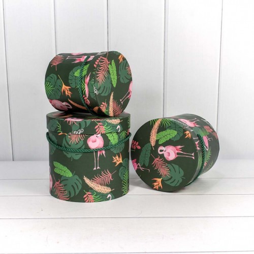 Коробка 18х17.2 см Набор 3 шт "Фламинго на зелёном фоне" (Зеленый)