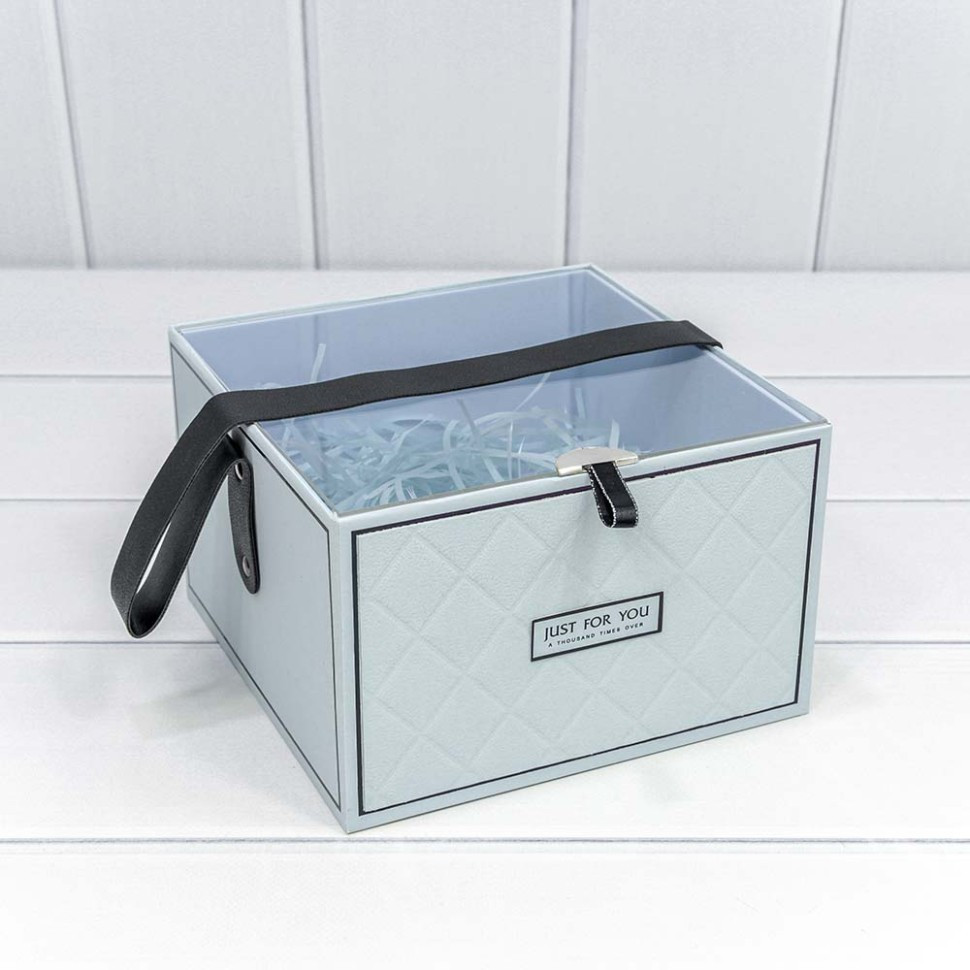 Коробка 19х19х12 см с прозрачной крышкой и ручкой (Голубой)