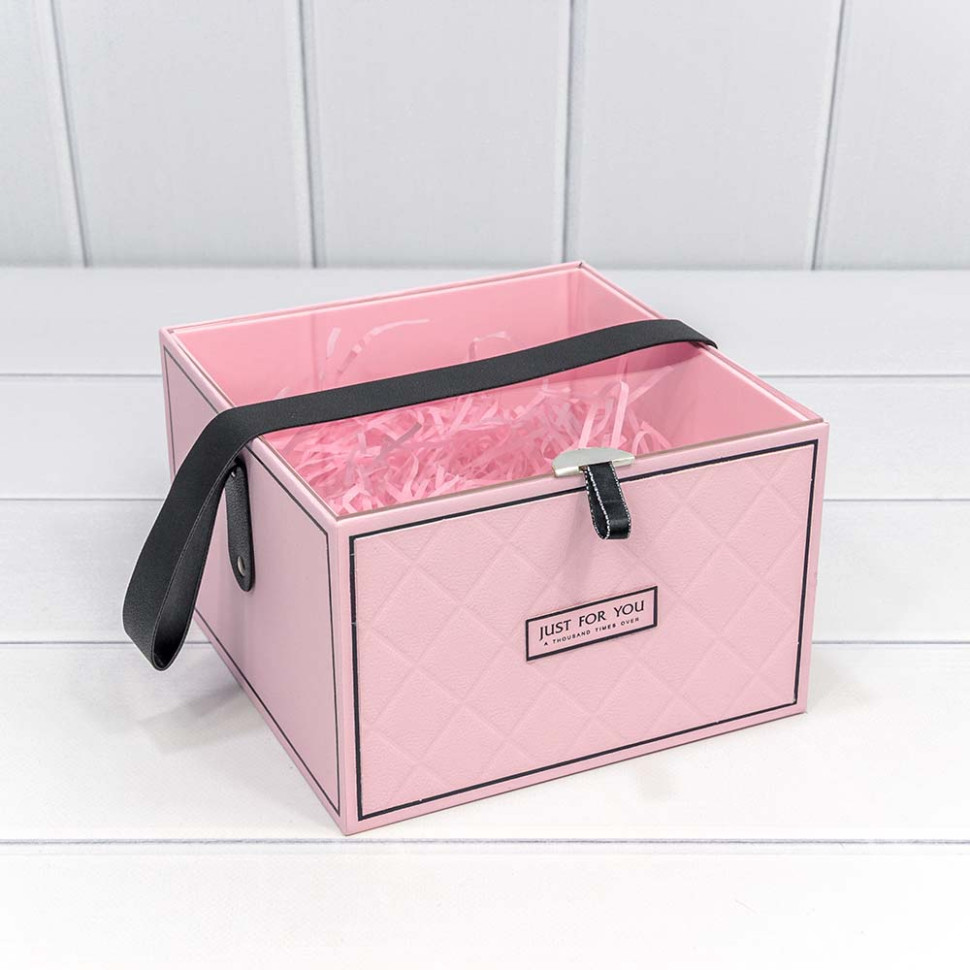 Коробка 19х19х12 см с прозрачной крышкой и ручкой (Розовый)