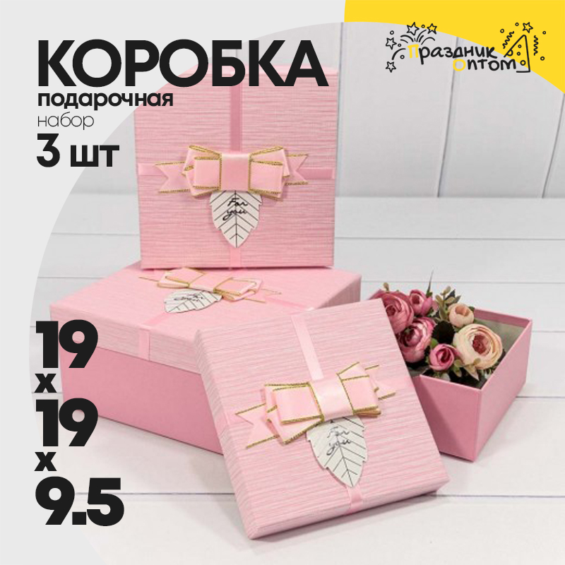 Коробка 19х19х9.5 см Набор 3 шт "For You" с бантом (Розовый)