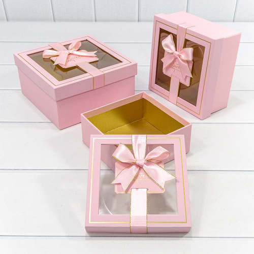 Коробка 19х19х9.5 см Набор 3 шт с окошком (Розовый)