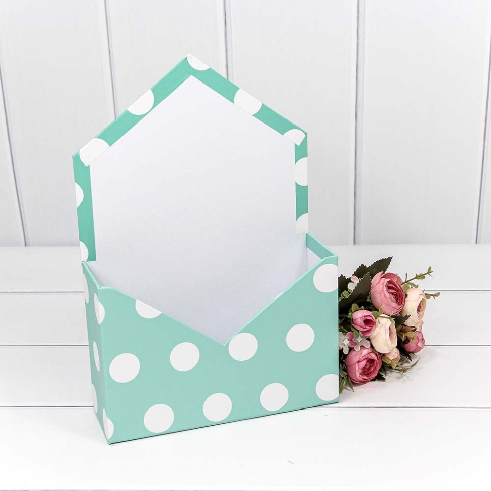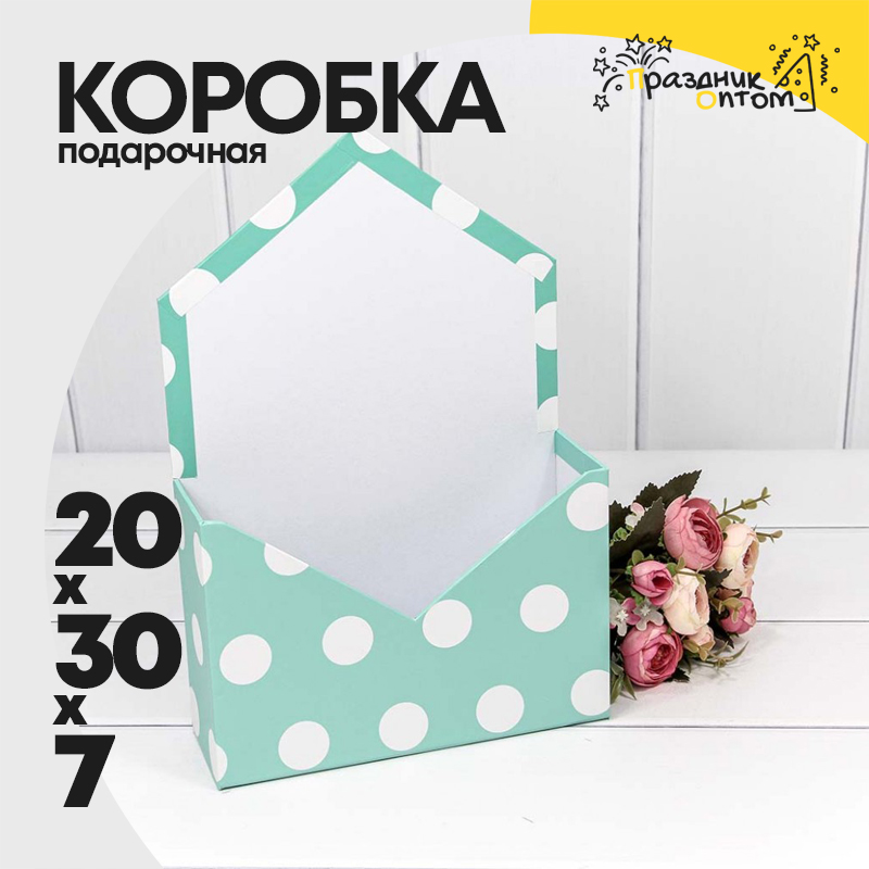 Коробка 20х30х7 см "Горошек" Конверт (Бирюзовый)