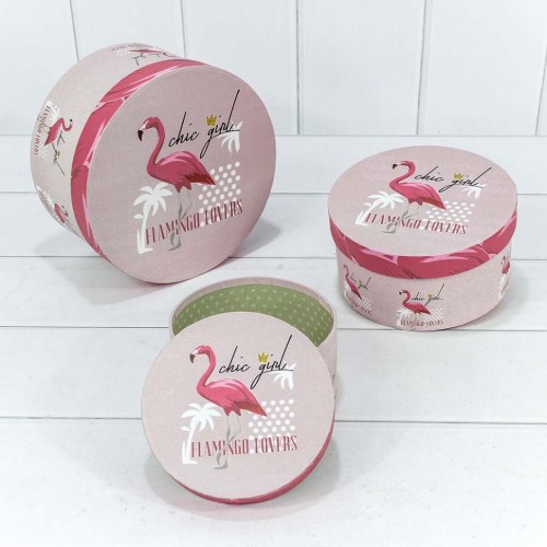 Коробка 21х11.5 см Набор 3 шт "Фламинго на розовом фоне" (Розовый)