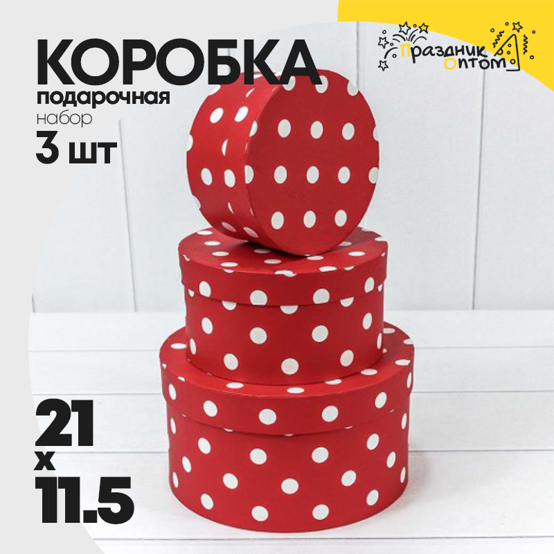 Коробка 21х11.5 см Набор 3 шт "Горошек" (Красный)