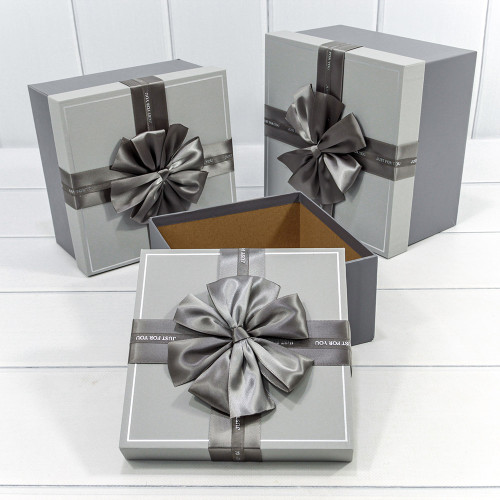 Коробка 21х21х12.3 см Набор 3 шт "Just For You" с бантом (Серый)