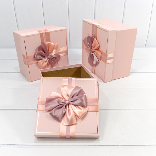 Коробка 21х21х12.3 см Набор 3 шт с бантом (Персиковый)