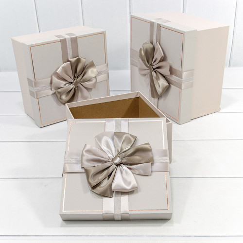 Коробка 21х21х12.3 см Набор 3 шт с бантом (Пудровый)