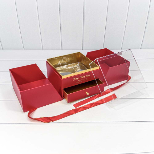 Коробка 21х21х18 см "Сюрприз" с атласной лентой (Красный)