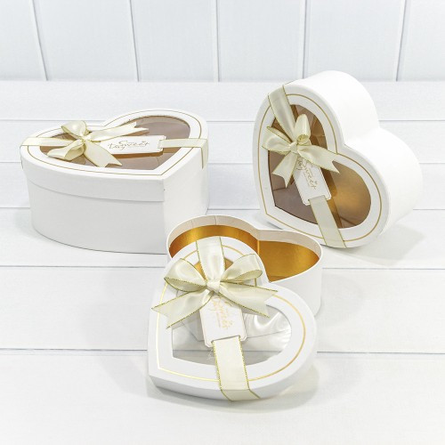 Коробка 22.2х19.5х9 см Набор 3 шт "Сердце" с бантом (Белый)
