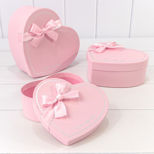 Коробка 22.2х19.5х9 см Набор 3 шт "Сердце" с бантом (Розовый)