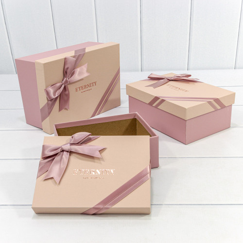Коробка 22.5х16х9.5 см Набор 3 шт "Eternity" с бантом (Пудровый)