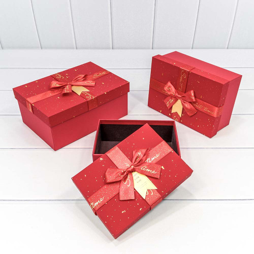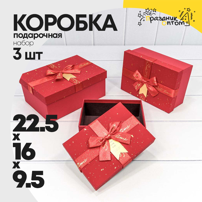 Коробка 22.5х16х9.5 см Набор 3 шт с бантом (Красный)