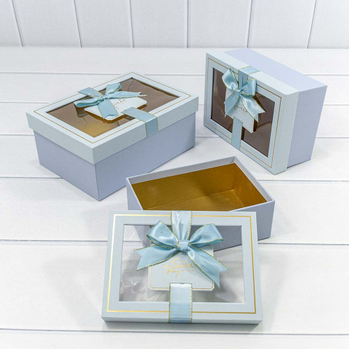Коробка 22.5х16х9.5 см Набор 3 шт с окошком (Голубой)
