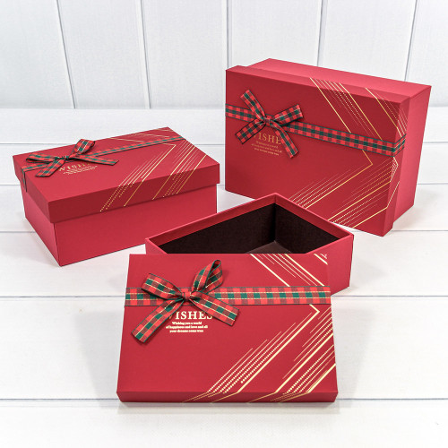 Коробка 22.5х16х9.5 см Набор 3 шт "Wishes" с бантом (Красный)