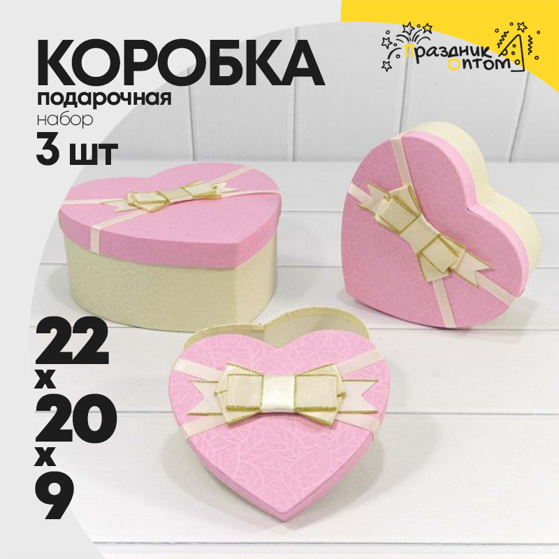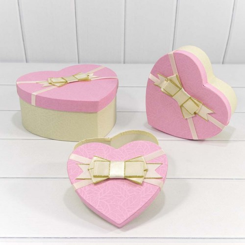 Коробка 22х20х9 см Набор 3 шт "Сердце" с бантом (Бежевый, Розовый)