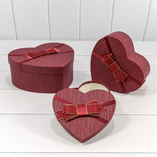 Коробка 22х20х9 см Набор 3 шт "Сердце" с бантом (Красный)