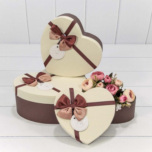 Коробка 22х20х9 см Набор 3 шт "Сердце" с бантом (Микс)