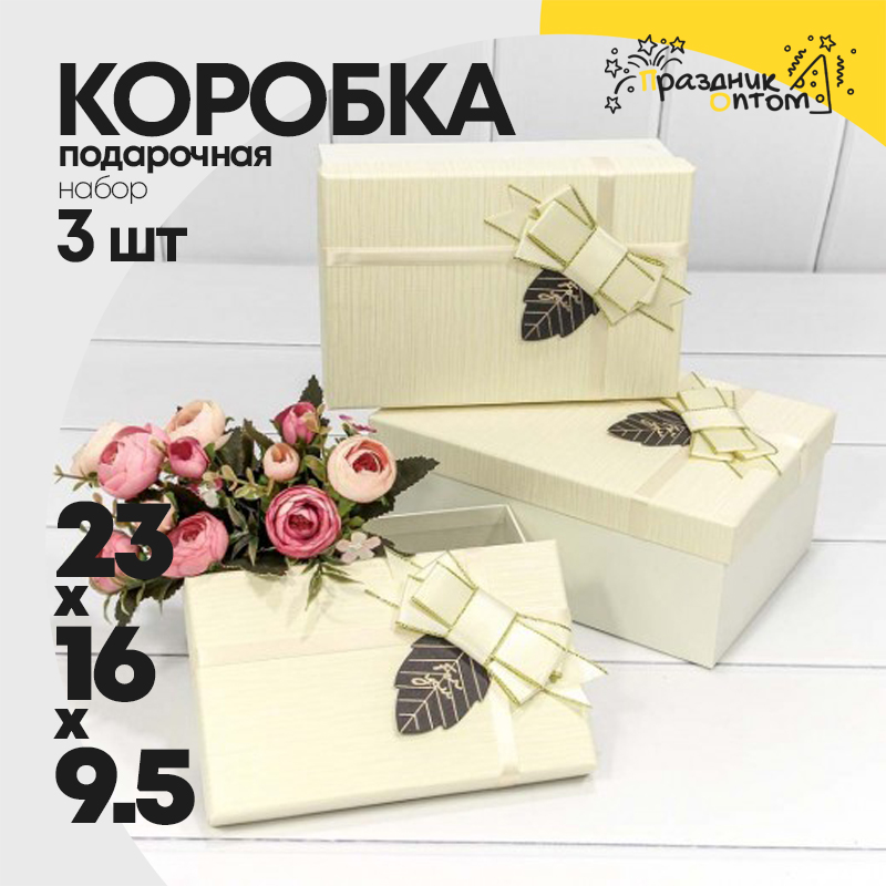 Коробка 23х16х9.5 см Набор 3 шт "For You" с бантом (Бежевый)
