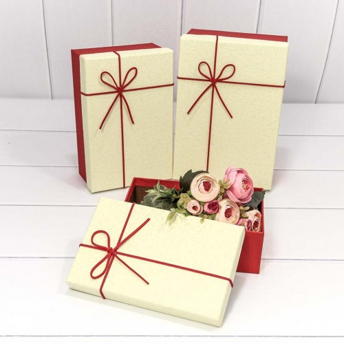 Коробка 23х16х9.5 см Набор 3 шт с кожаным бантом (Красный, Бежевый)