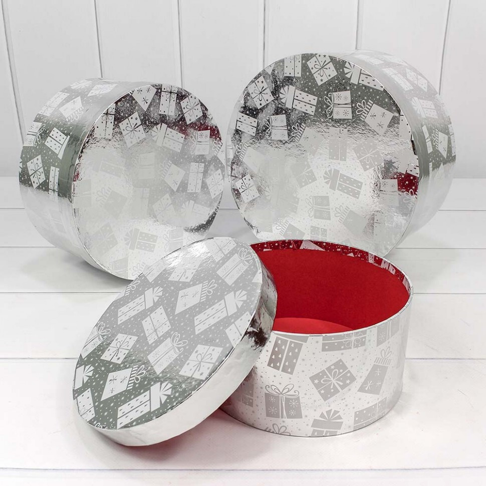 Коробка 25.5 х 11.5 см Набор 3 шт "Подарки" (Серебро)