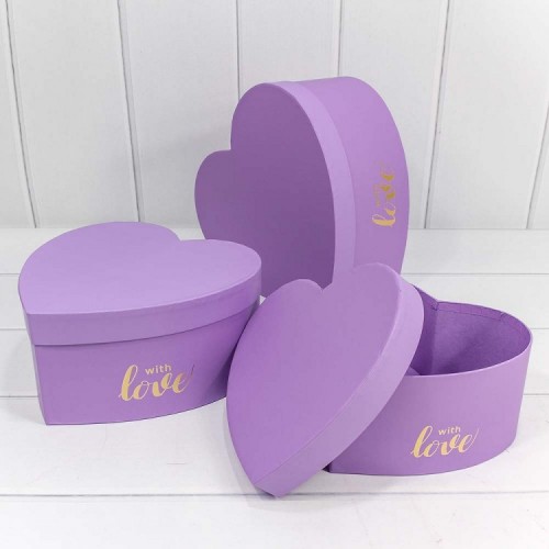 Коробка 25х24х12 см Набор 3 шт "Сердце" (Сиреневый)